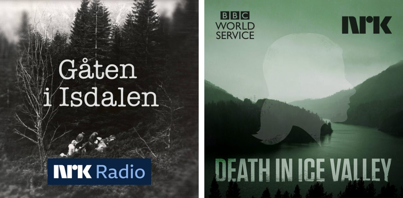 Gåten i Isdalen er en true crime-podkast. Den handler om en kvinne som ble funnet død i Isdalen i Bergen i 1970. Undersøkelser viste at hun mest sannsynlig hadde kledd seg naken, inntatt sovetabletter og deretter blitt brent på et bål. Det viste seg at hun hadde bodd på flere hoteller rundt om i byen, men da med falske pass og flere typer valutaer i kofferten. Likevel var det flere som hadde lagt merke til kvinnen, men ingen visste hvem hun var. NRK går grundig til verks for å prøve å nøste opp i hva som har skjedd, og ved hjelp av ny teknologi fokuserer de blant annet på DNA-spor og grundige undersøkelser av tenner. Jeg husker at denne podkasten hadde hele pakken. En god historiefortelling, et lydbilde som setter stemningen og ikke minst levde håpet om at saken endelig kunne bli oppklart.